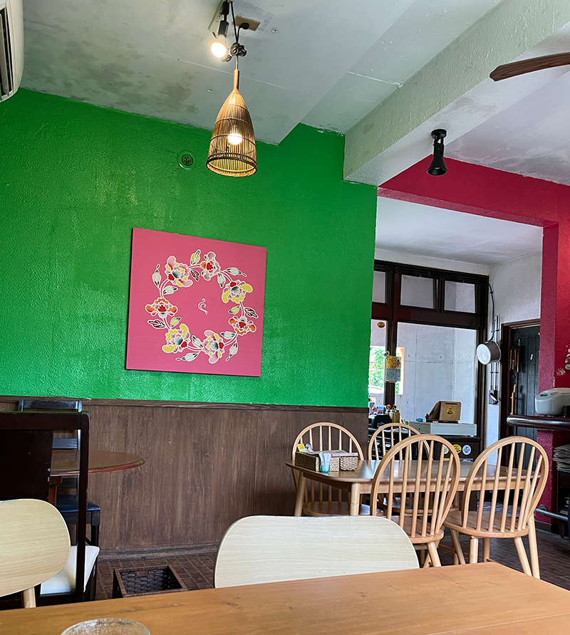 お店は、外観も内観も色とりどりの原色が使われたカラフルなお店です。