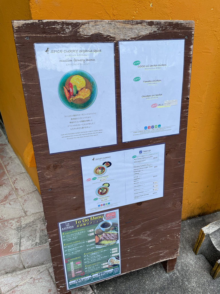 「あじとや首里店」は、原色の色使いの店内でテンション上げ上げになります。パリパリだったりほろほろだったり丁寧に作られたチキンが入ったスパイスカレーは、本格的なスパイスが効いているので、食べ進める中で汗は出るし、鼻もグスグスしてくるし、暑い夏は冷房の効いた部屋で体が冷えているので体温が上がる感じがとても嬉しいです♪