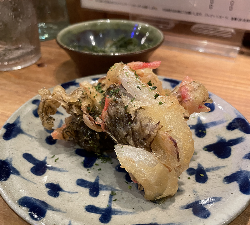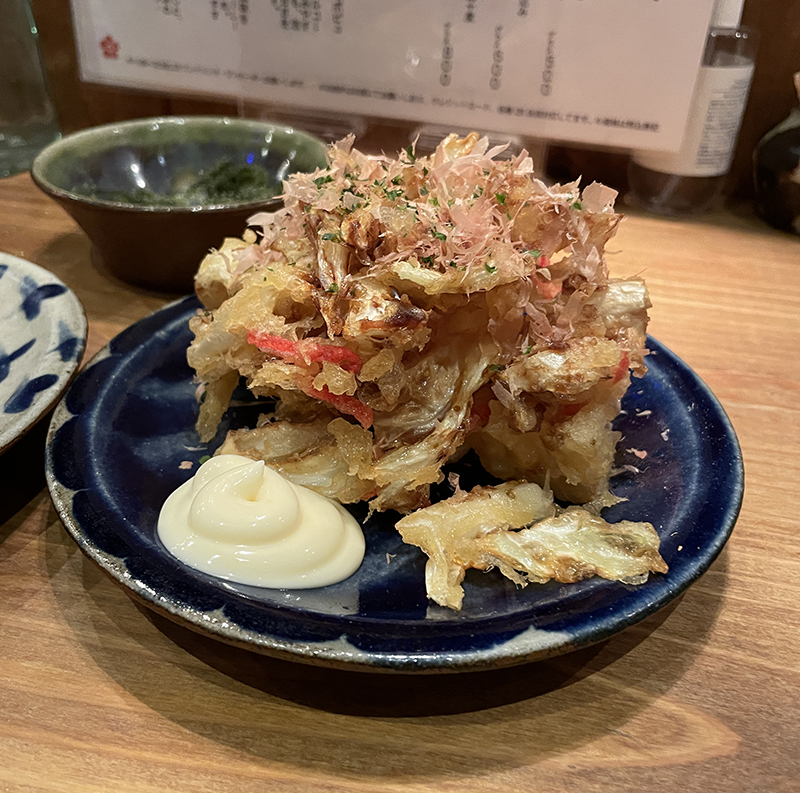 店内はカウンター席と奥にはテーブル席と2階席もあるようでした。夫婦二人で訪れたので私たちは入り口すぐにあるカウンター席を案内されました。木の温もりを感じるお店はとてもアットホームな雰囲気で、お店の方もみなさん元気で感じもよく、ほぼ満席なので活気あふれるお店です。